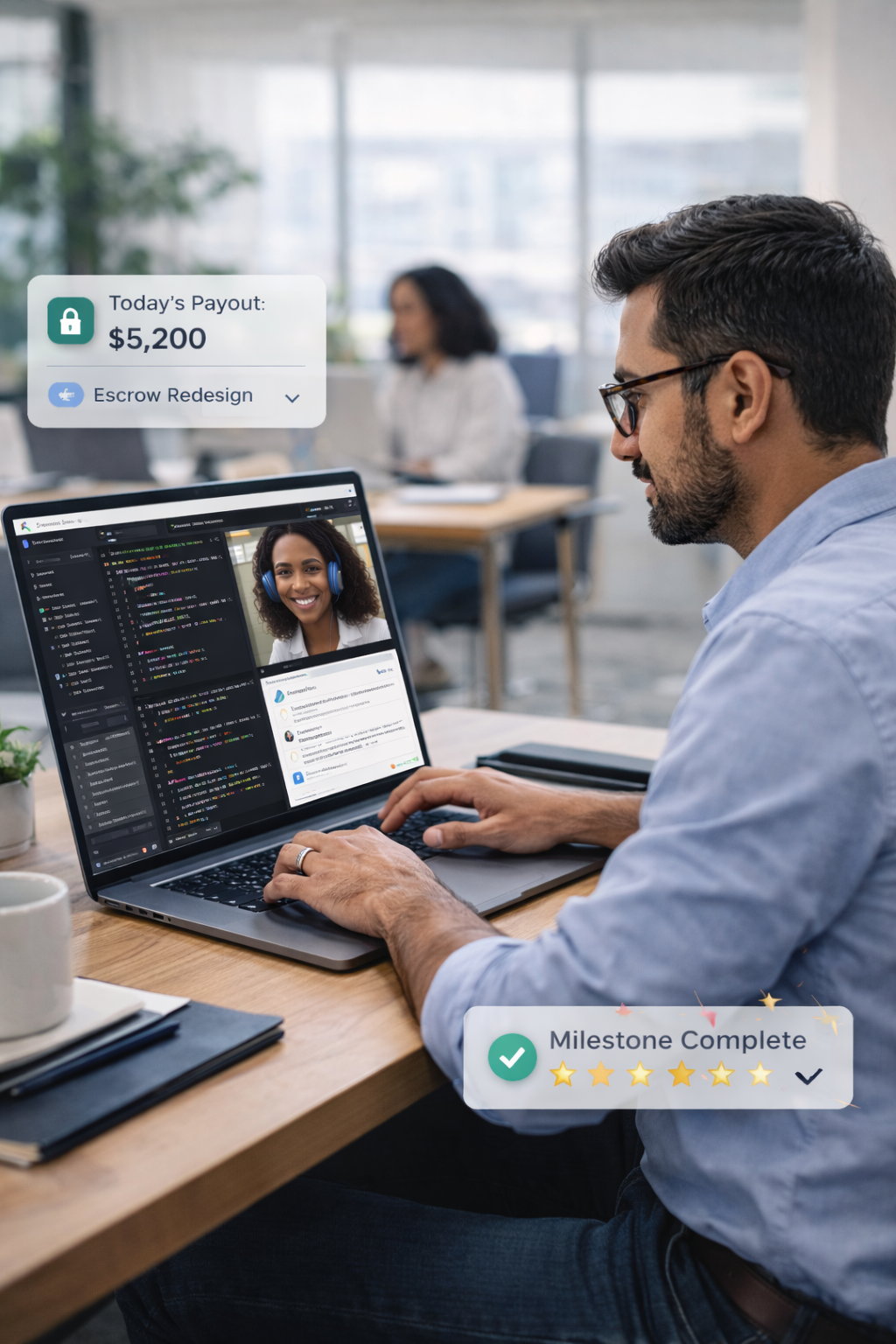 Clear workflows, escrow, and visibility from kickoff to completion.